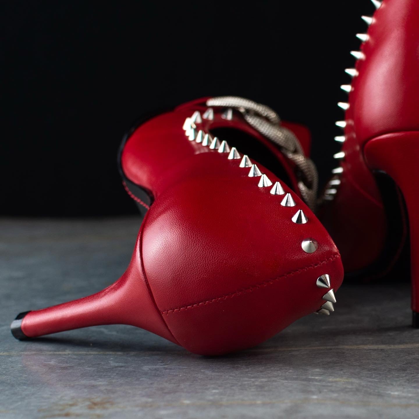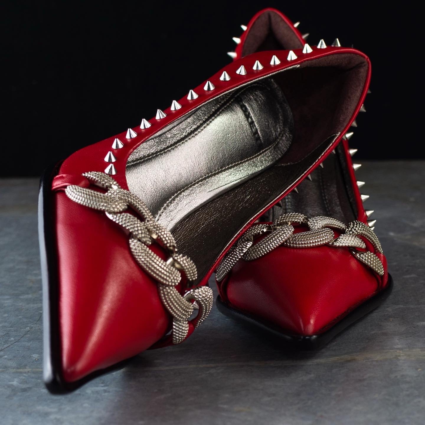 Glória é a expressão máxima do rock glam com um toque de sofisticação. Sua forma pointed e o salto imponente de 8 cm elevam a atitude. Em pelica, com sola de couro e spikes em banho metal níquel, ele redefine o clássico com personalidade marcante. Uma verdadeira declaração de estilo para mulheres que sabem que o poder está nos detalhes.