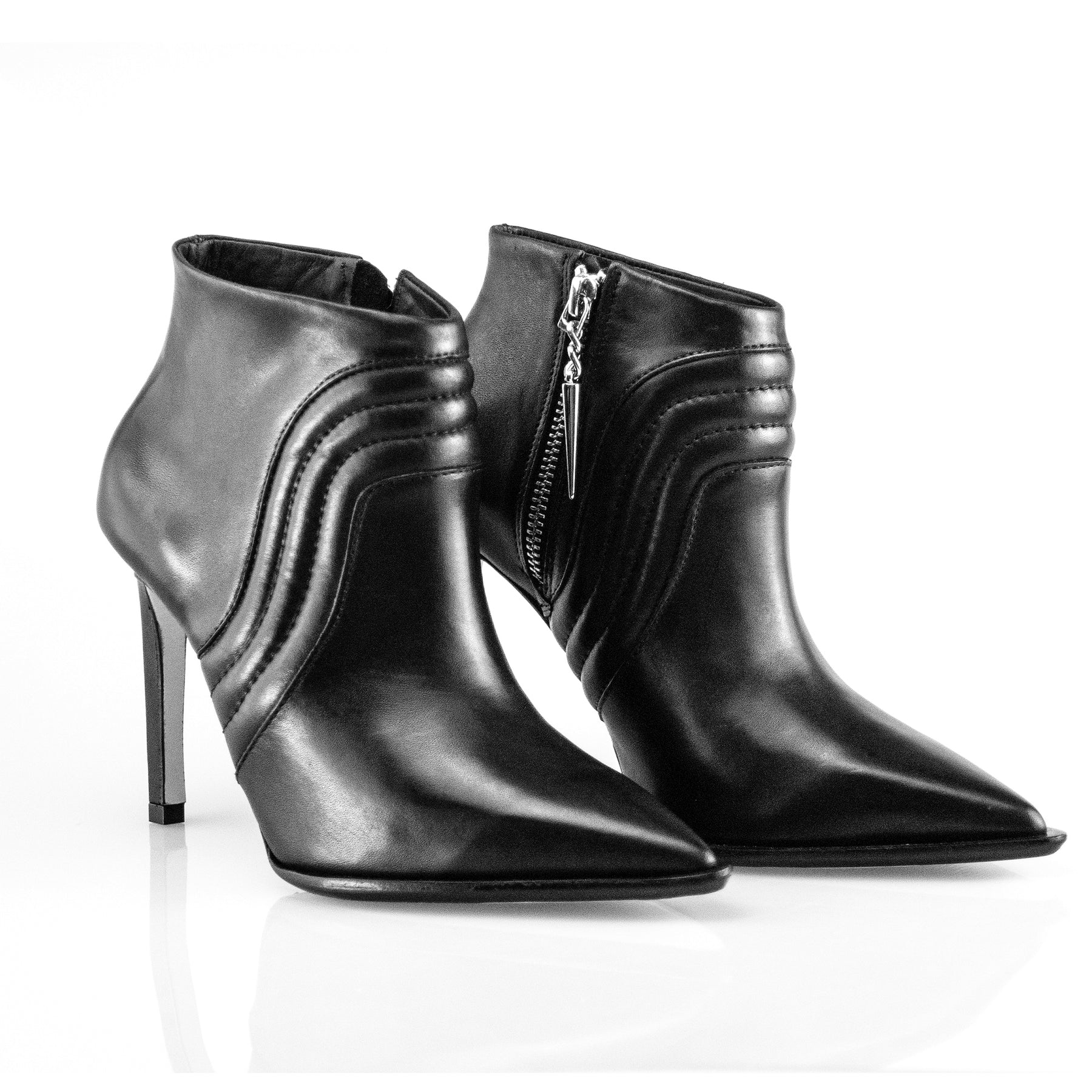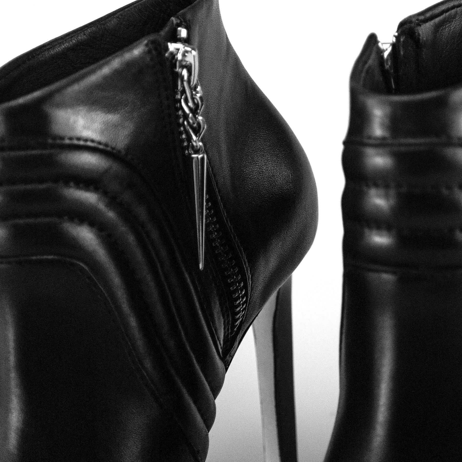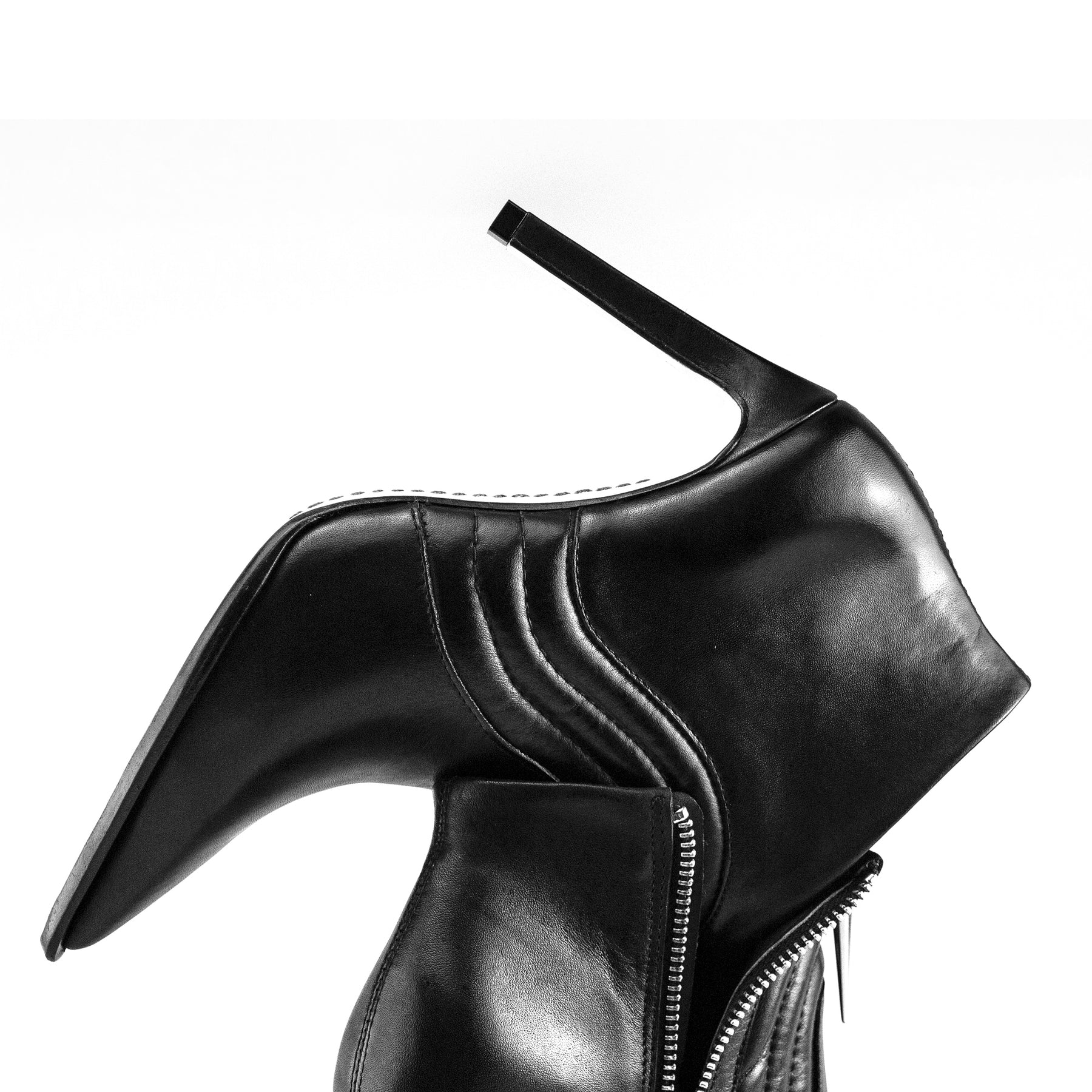 PELICA Preta - SALTO forrado em PELICA - SOLA em couro- ZIPER níquel - SPIKE níquel