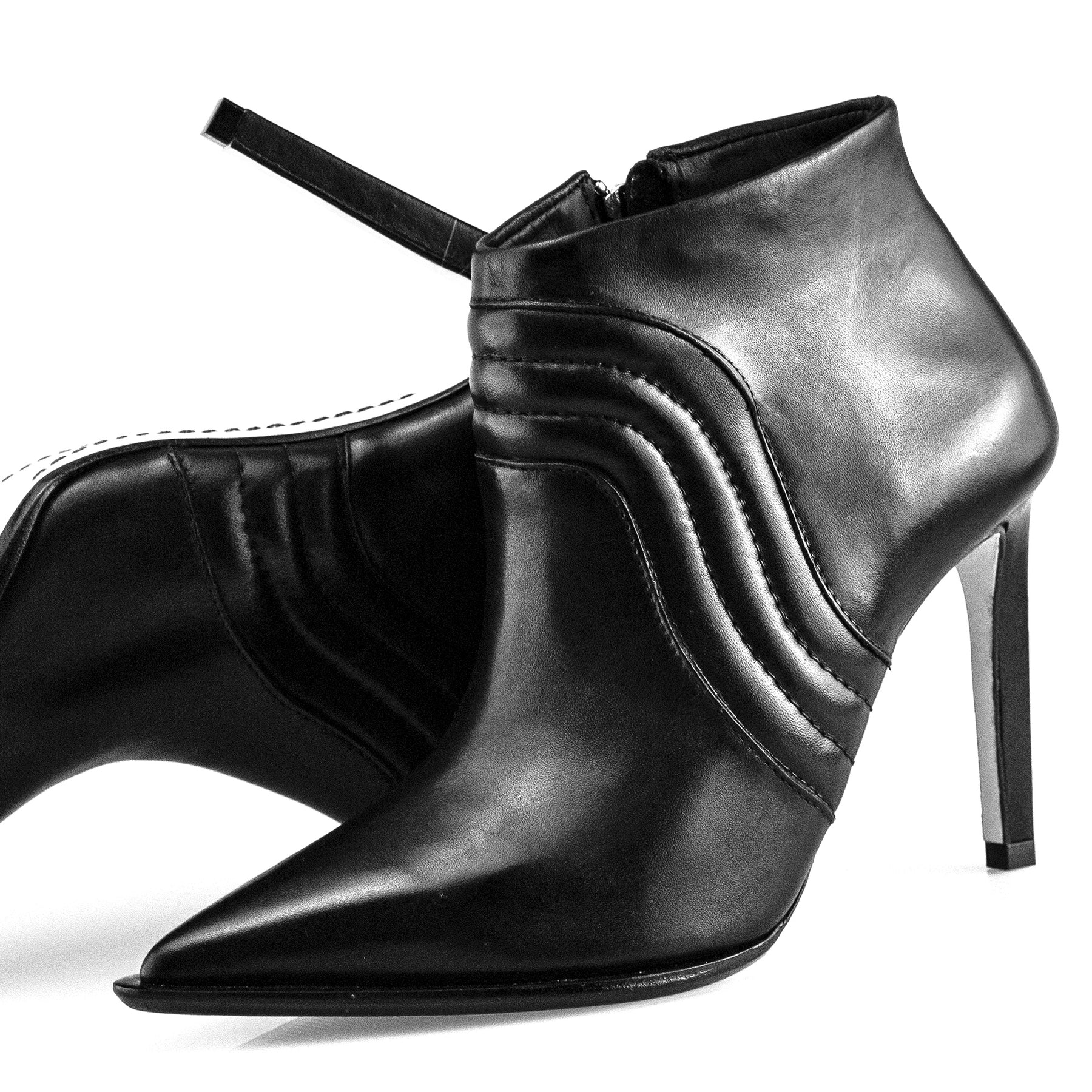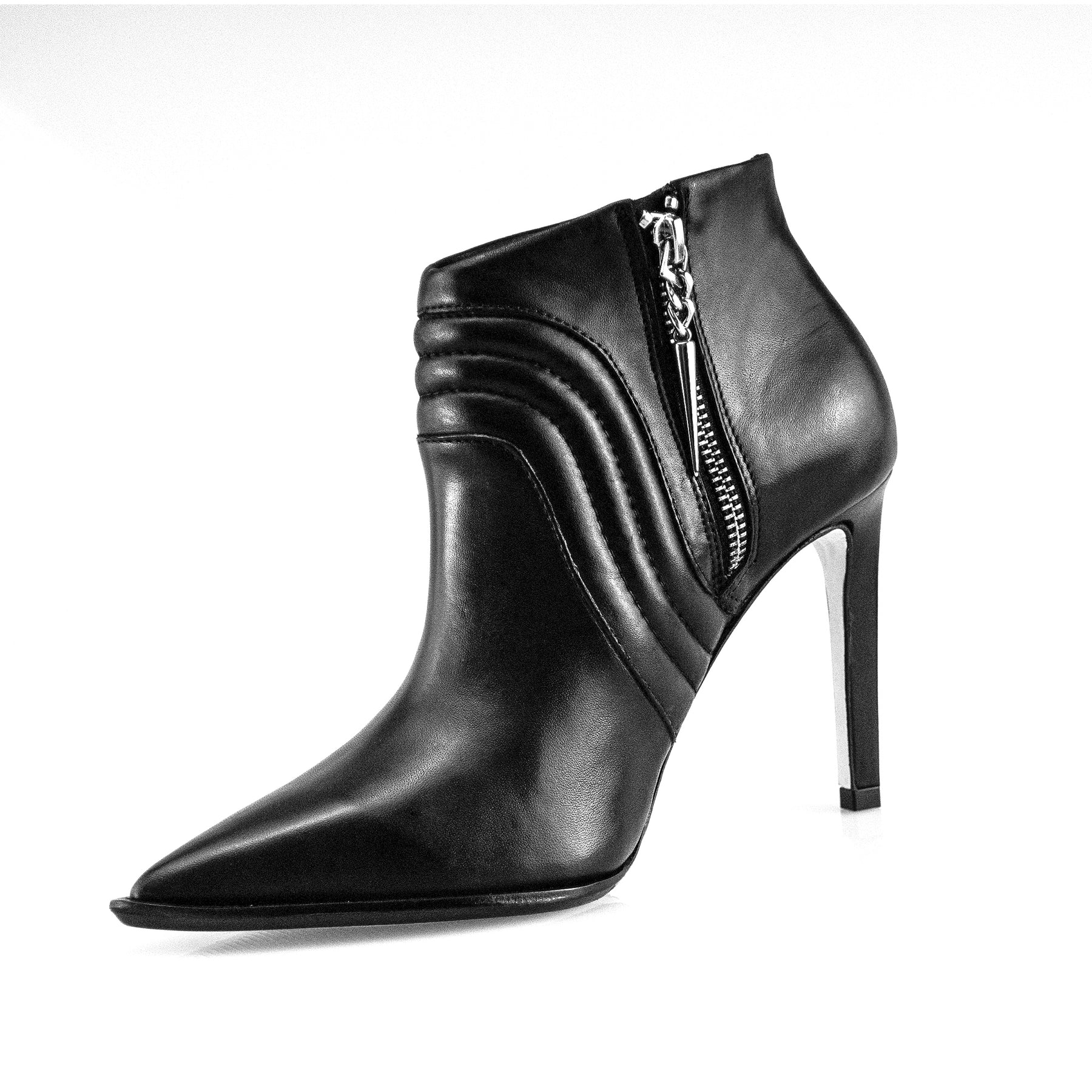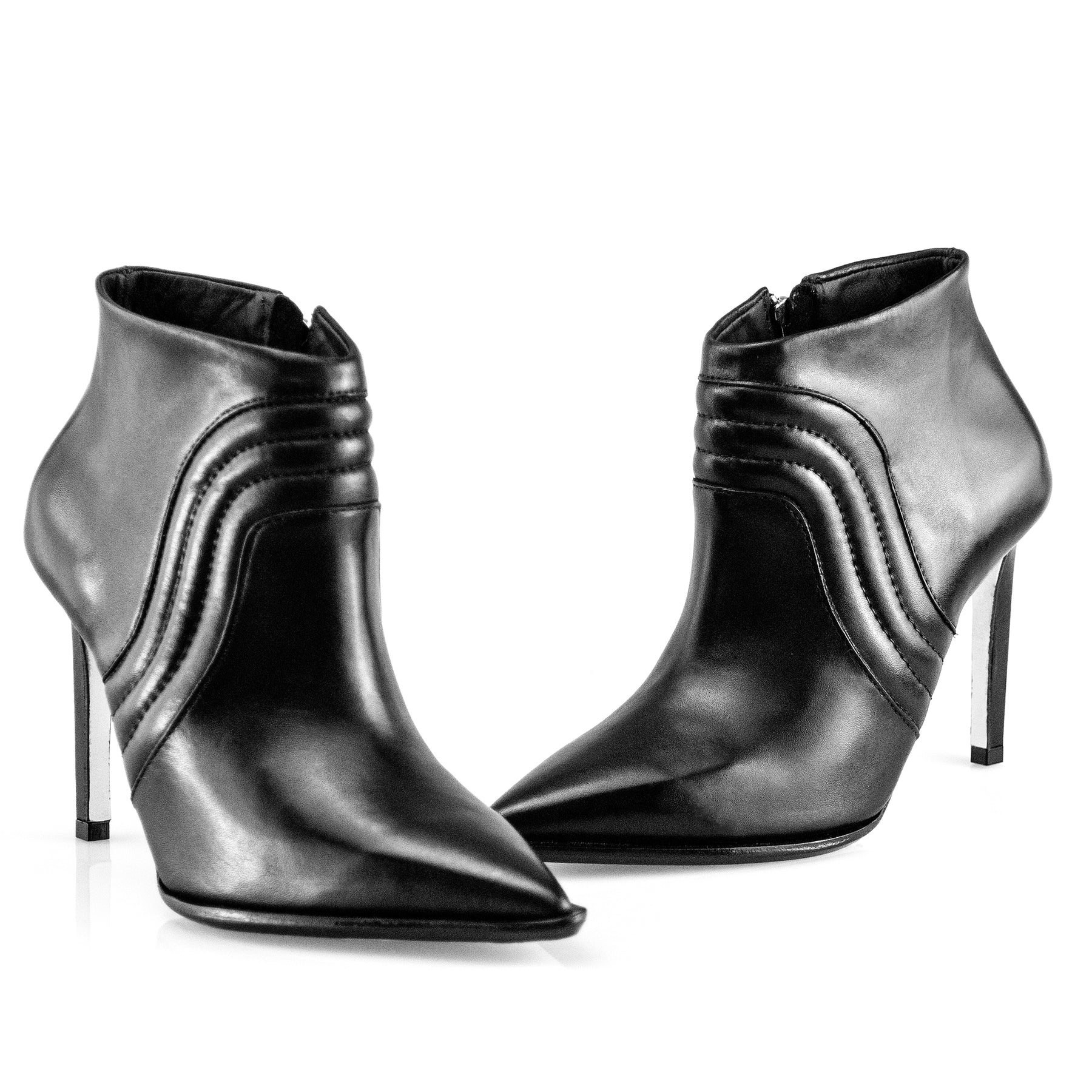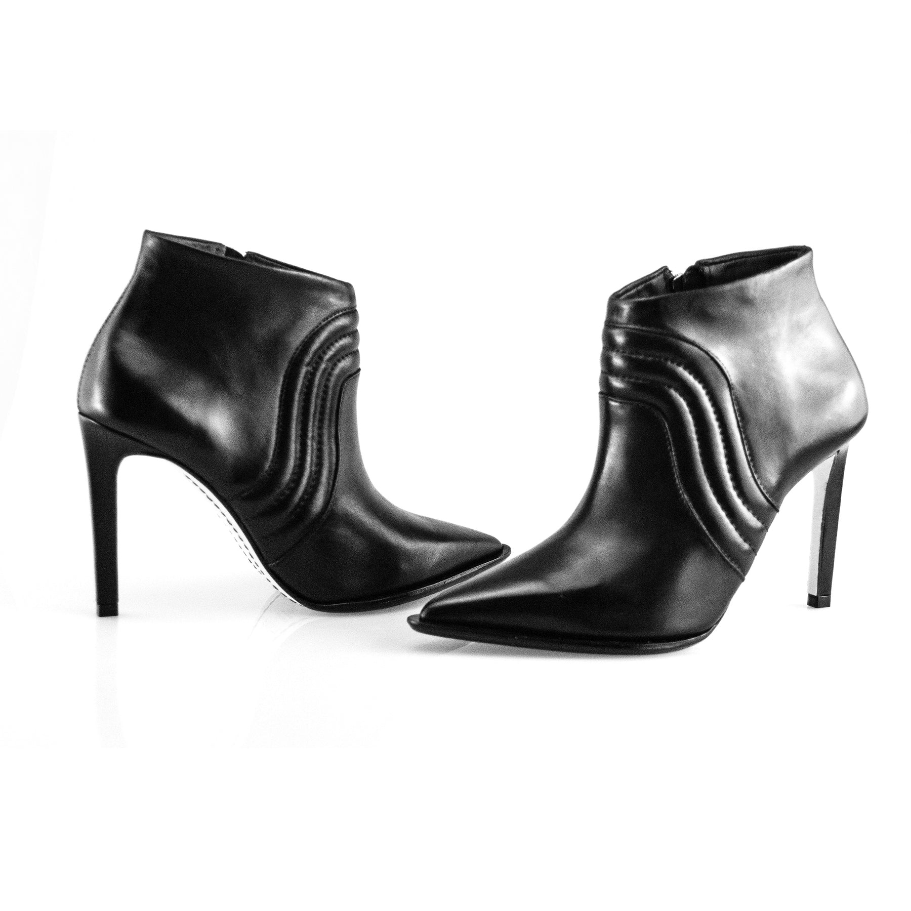 PELICA Preta - SALTO forrado em PELICA - SOLA em couro- ZIPER níquel - SPIKE níquel