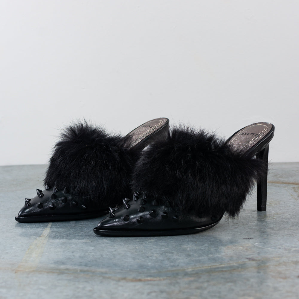 Miriam.M é sexy, feminina e muito glamourosa ! Consegue unificar todas as suas qualidades, apenas com um olhar. E essa mule que mistura pelo, pelica e a picancia dos spikes, entrega tudo que nos inspira em você.