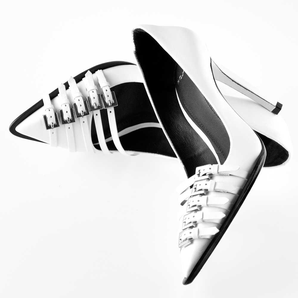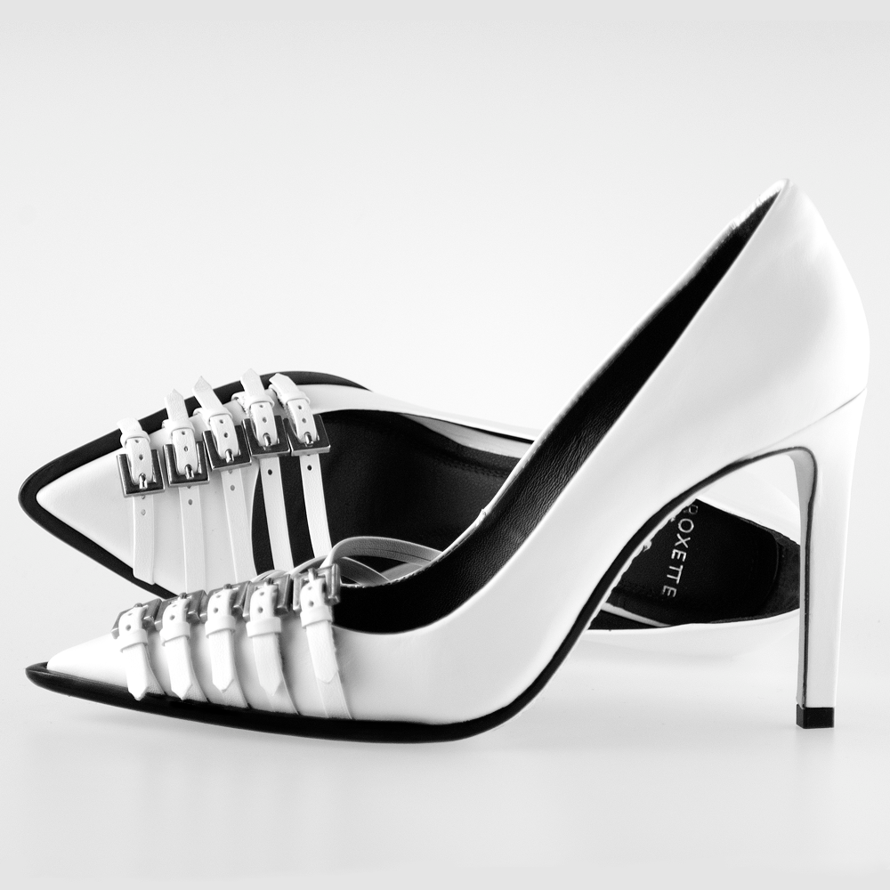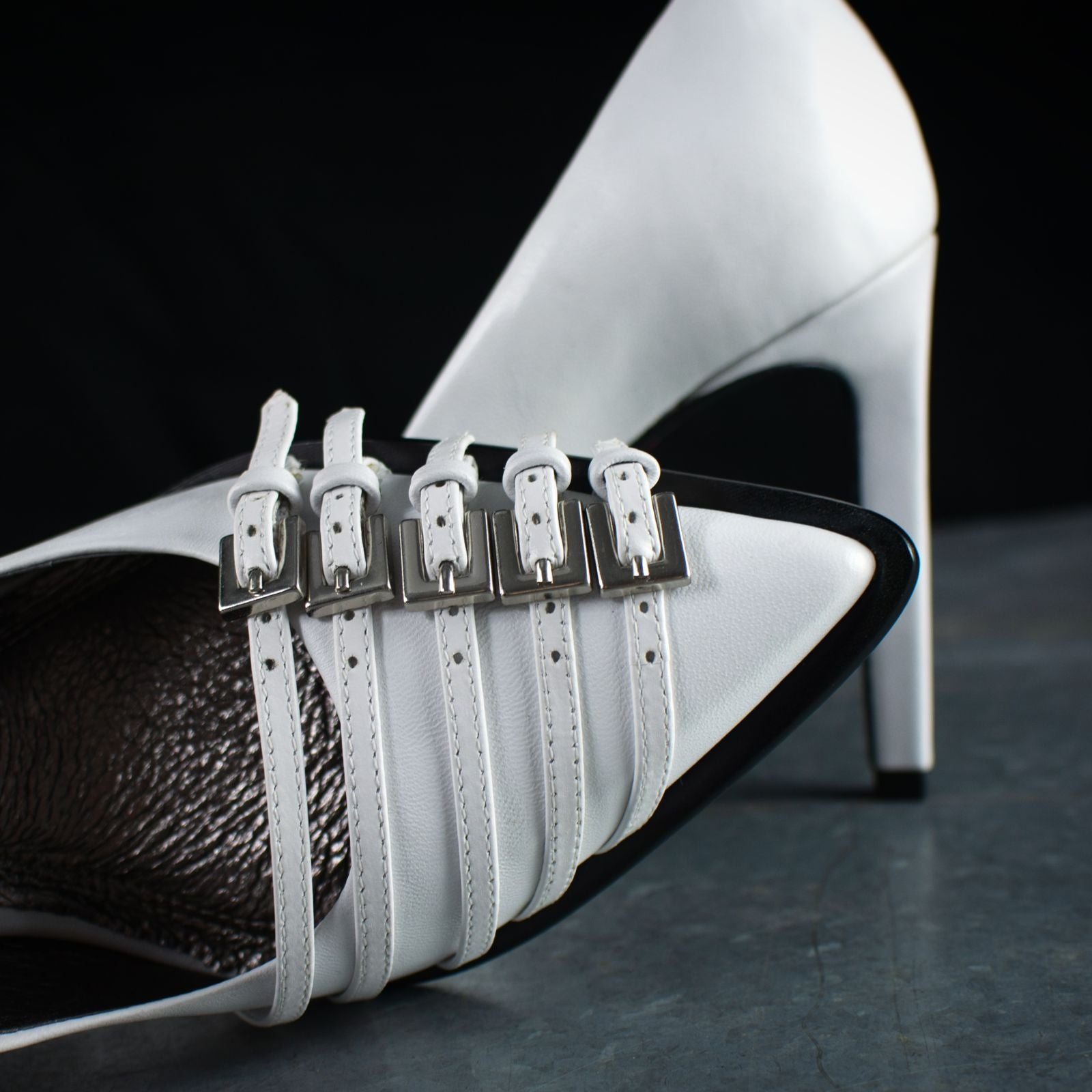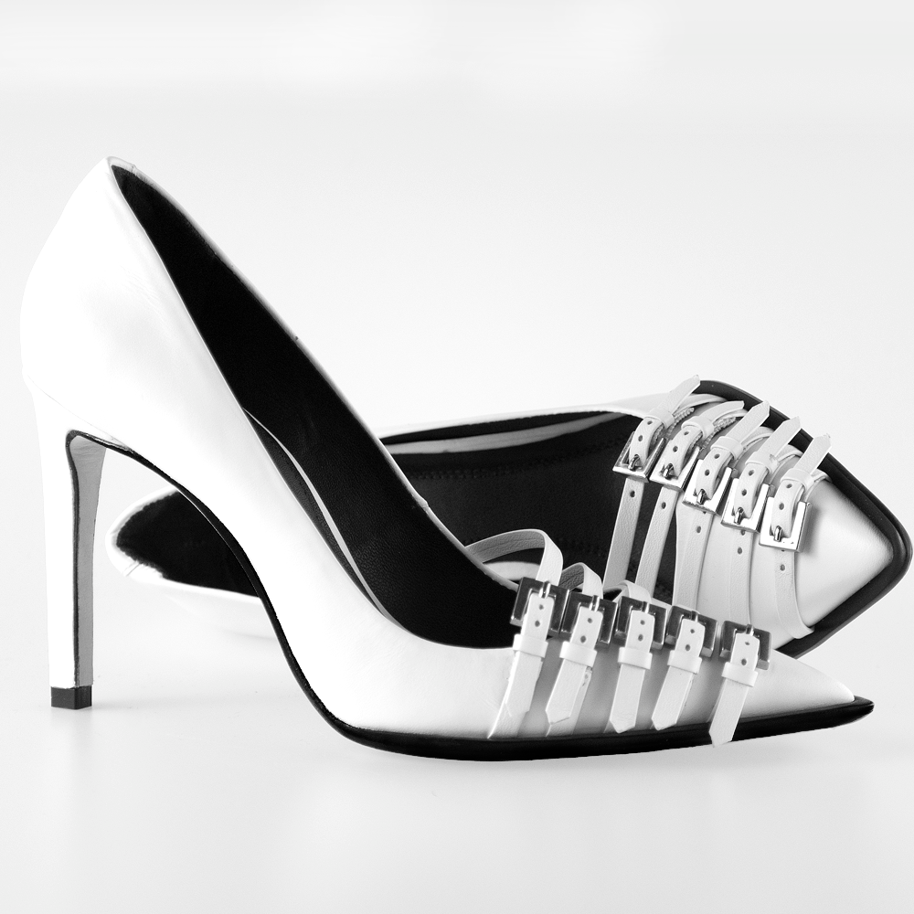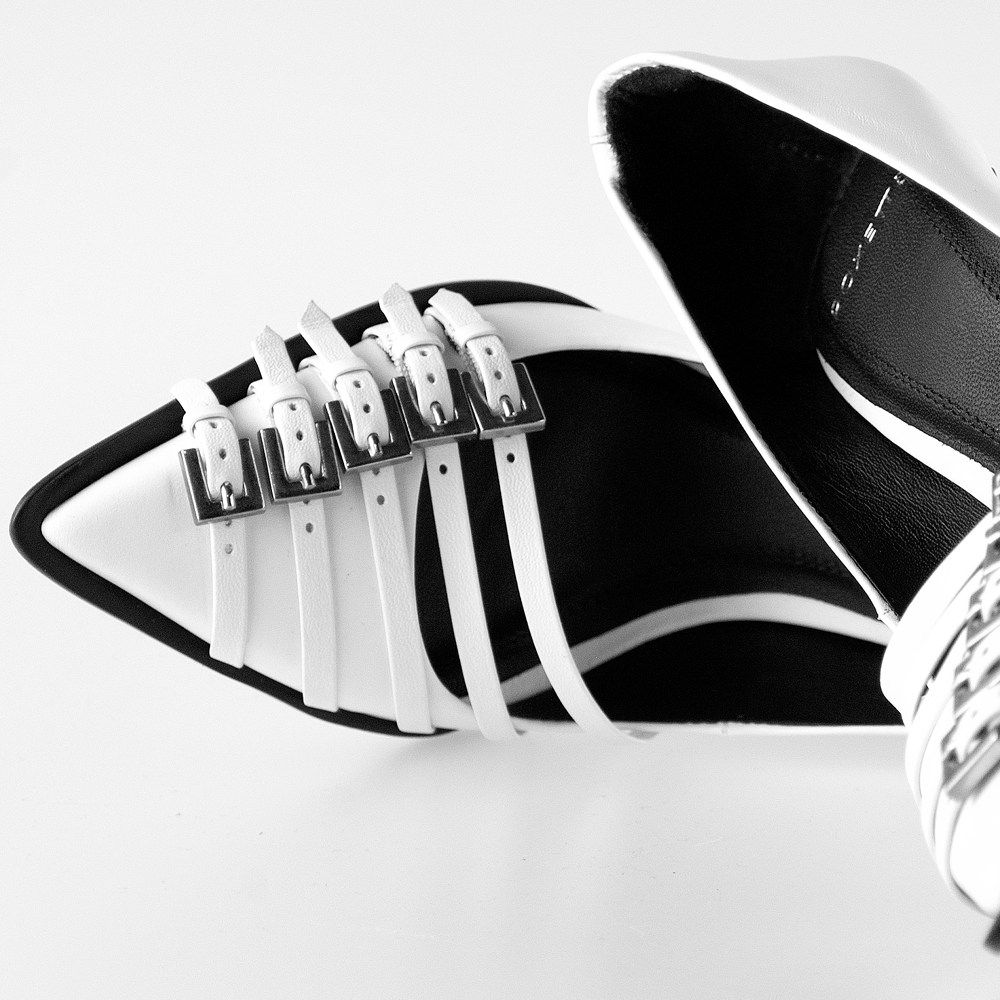 Uma mulher deslumbrante, que carrega em si a beleza impecável e singular. Um scarpin que vai além do clássico – é expressão, identidade e arte. Finalizado com cinco fivelas que sussurram segredos individuais