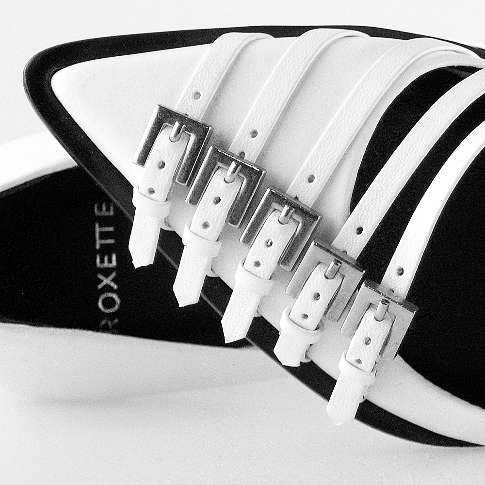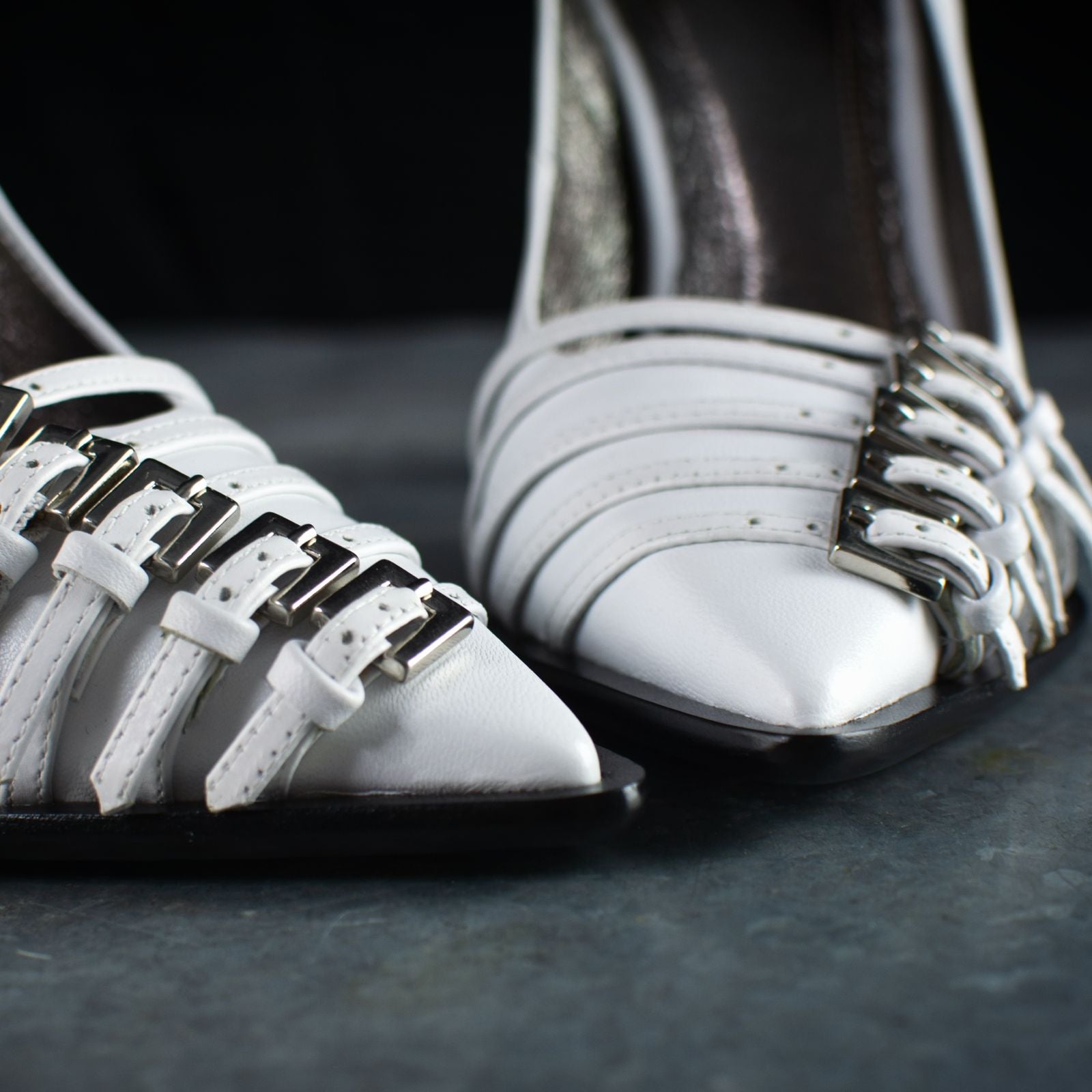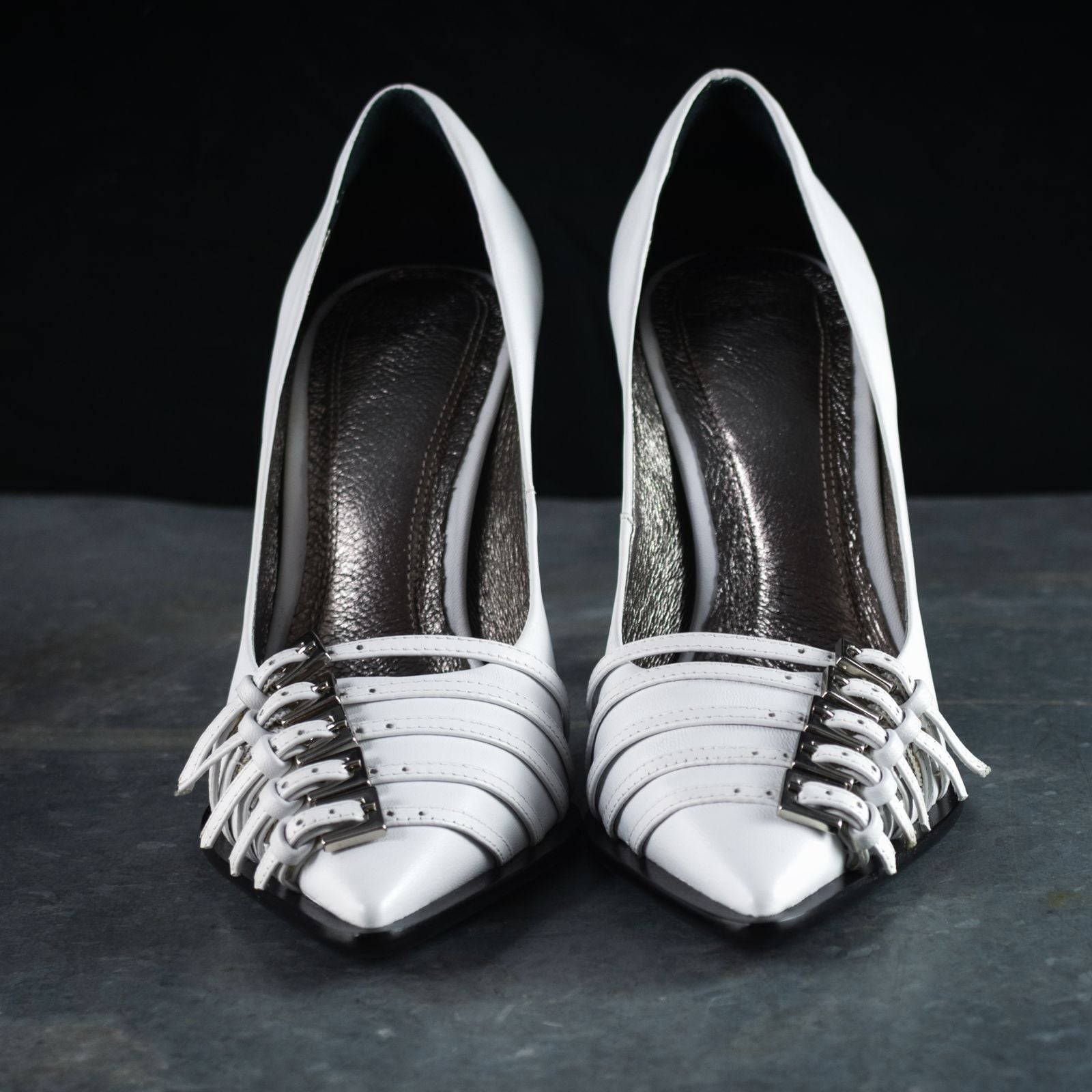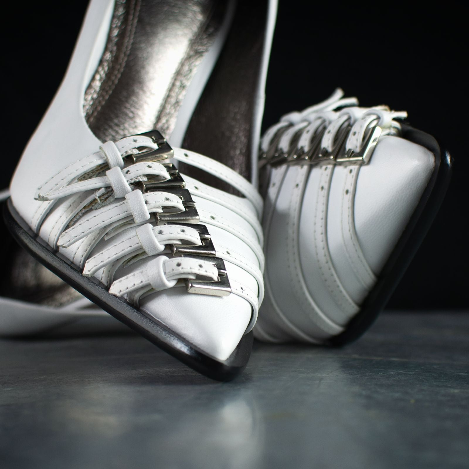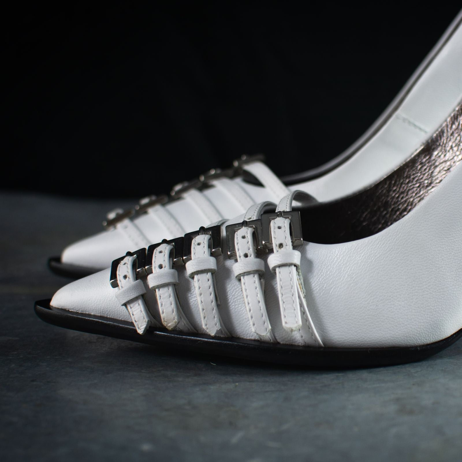 Uma mulher deslumbrante, que carrega em si a beleza impecável e singular. Um scarpin que vai além do clássico – é expressão, identidade e arte. Finalizado com cinco fivelas que sussurram segredos individuais